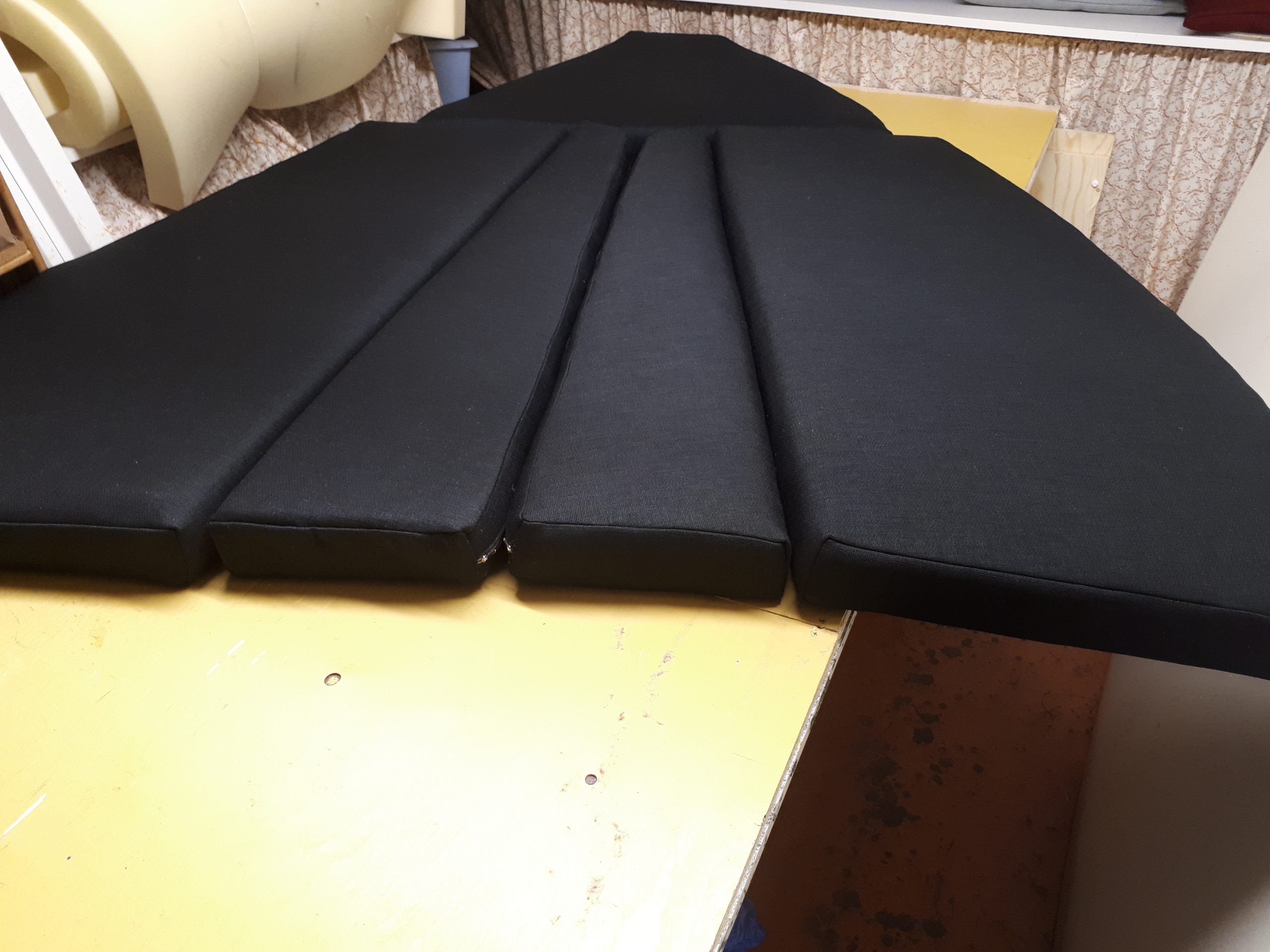 Sömnad av extra dyna mellan två dynor i en husbil efter mått.